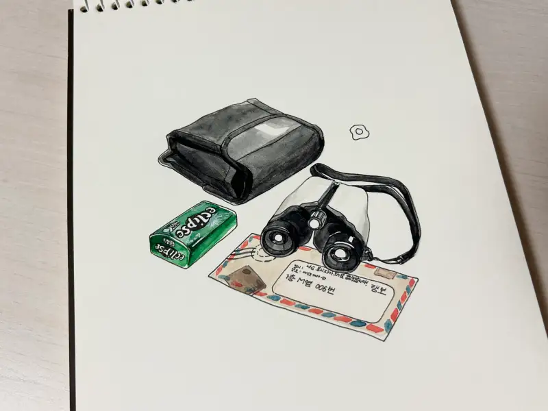 흥미로운 첫번째 주제와 함께 관극을 갈 때 꼭 챙겨가는 오페라글라스와 이클립스 그리고 티켓을 그려봤어요