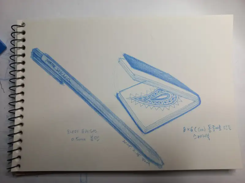 꼭 챙겨다니는 기본템인 스케치북과 볼펜입니다.