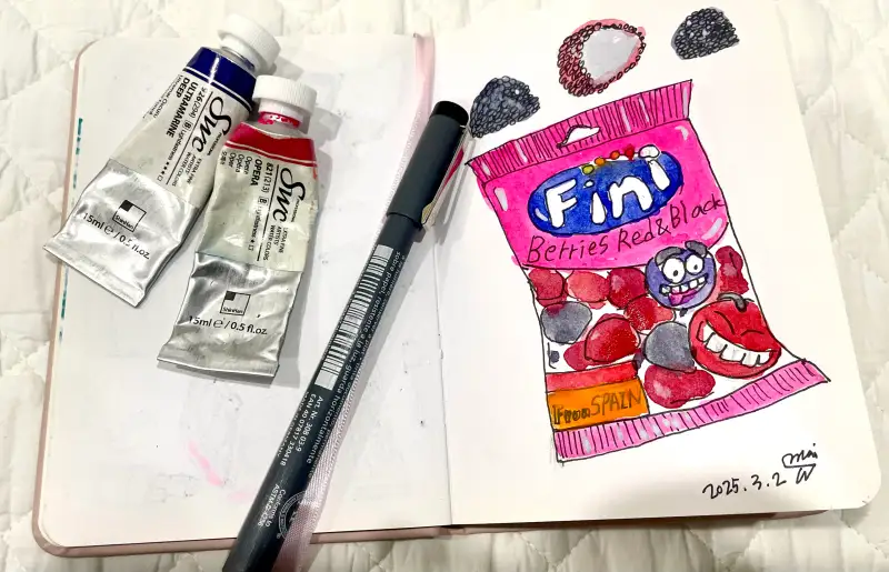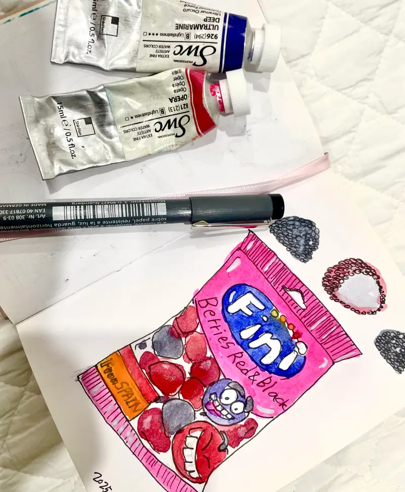 딸기랑 블루베리를 닮은 달달한 최애 젤리를 펜드로잉과 신한화구수채화 물감으로 표현해보았답니다😊