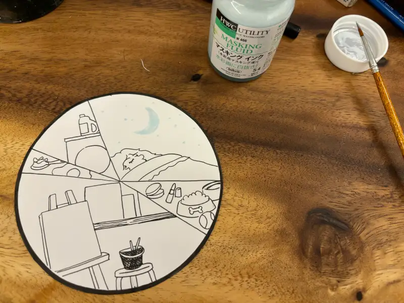 수채화로 진행하면서 마스킹액도 오랜만에 써봤네요.