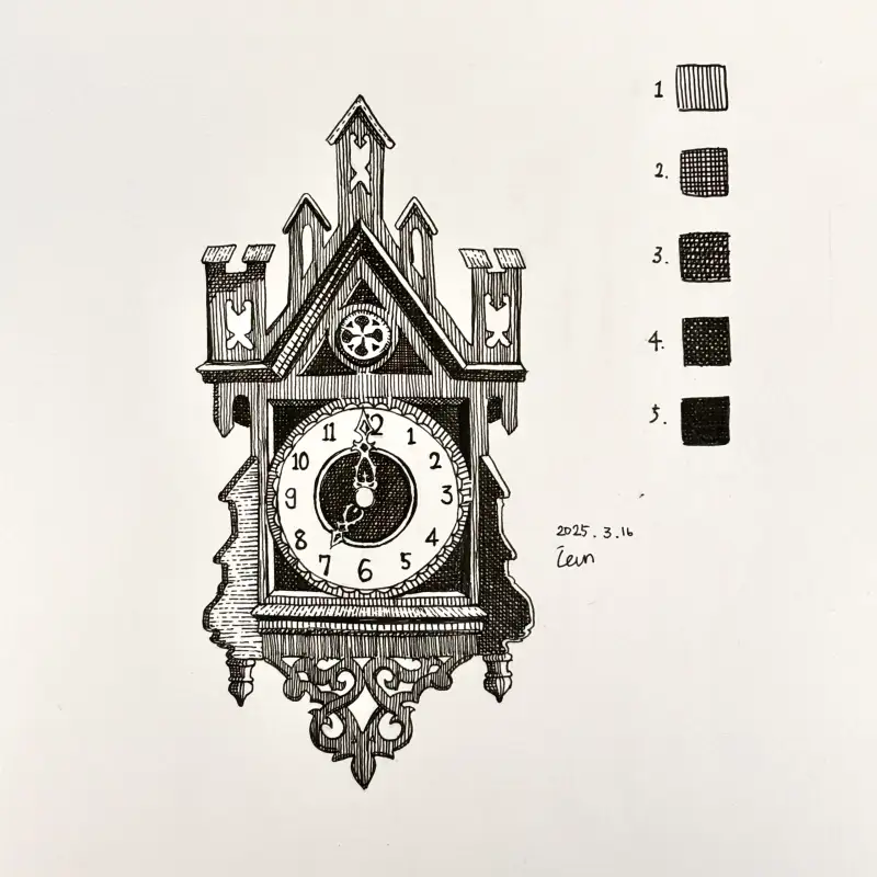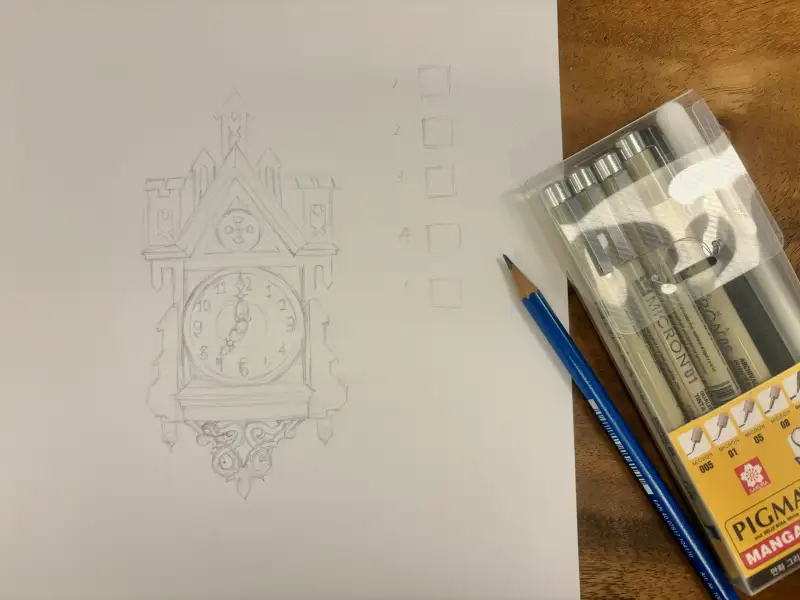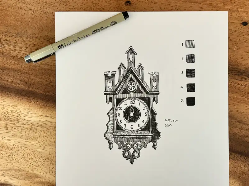 펜화로 엔틱 시계를 그려보려고 스케치먼저 해준뒤 펜으로 형태를 잡아가며 명암을 채워주었어요.