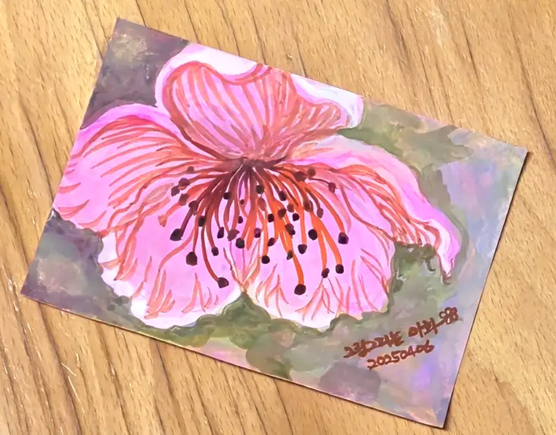 🌸벚꽃🌸 한송이를 확대하여 불투명 수채화로 그려 보았습니다.