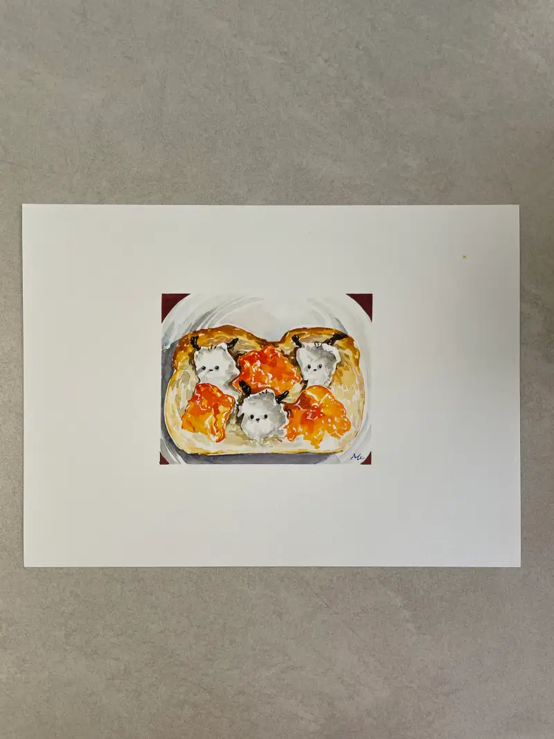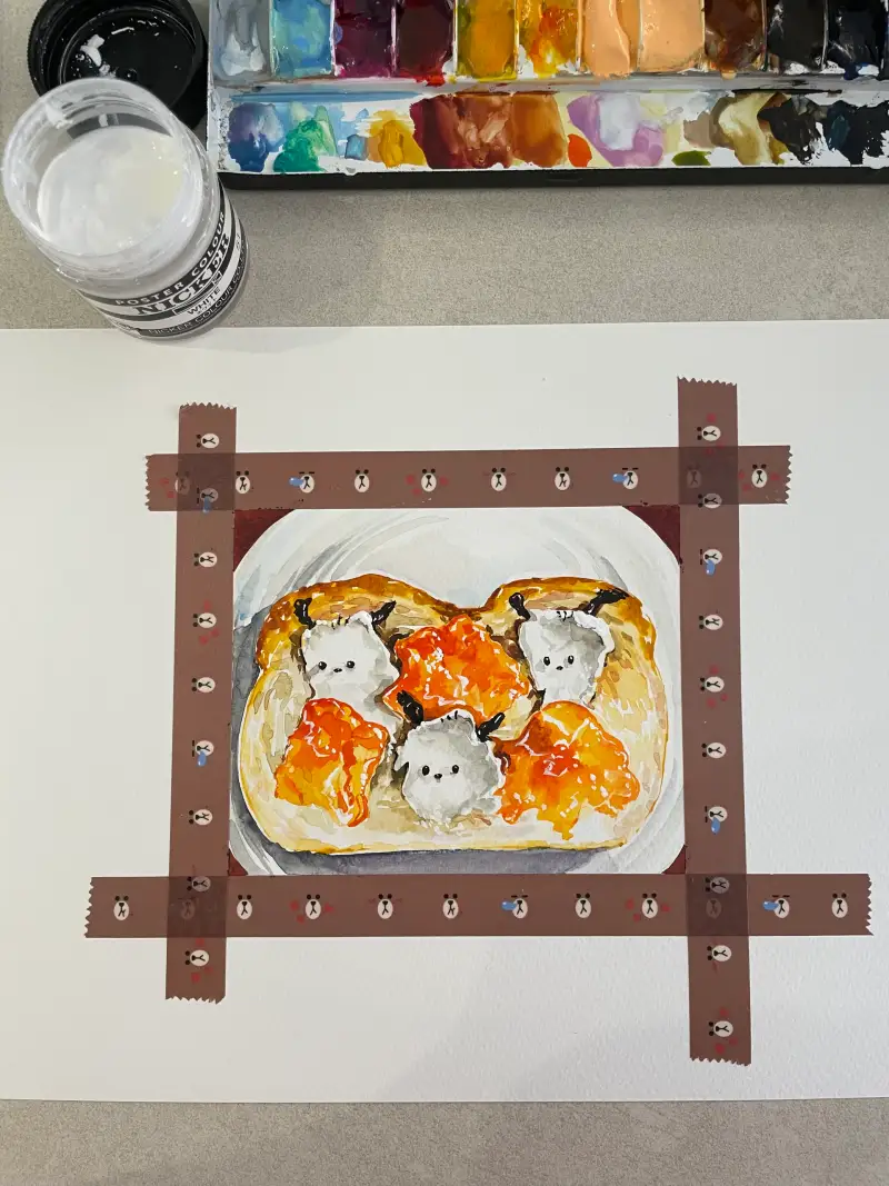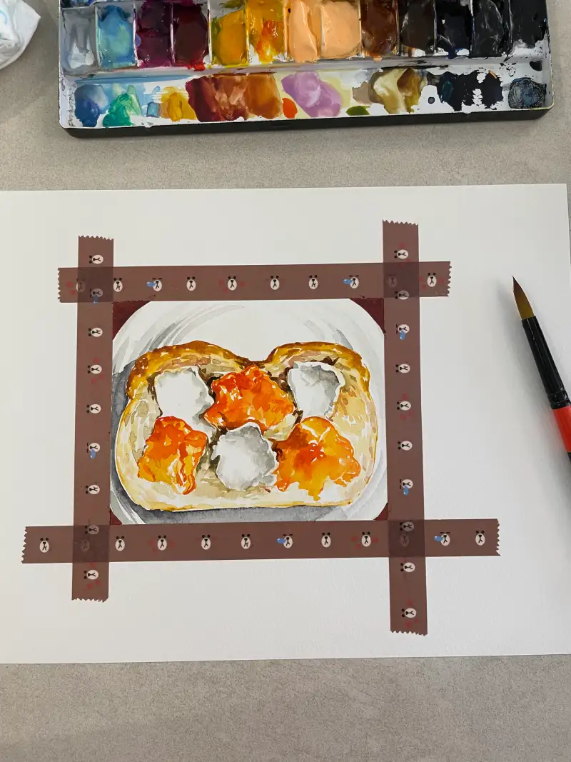 귀여움을 가득 담은 토스트를 수채화로 그려봤어요. 한 조각이라 아쉽지만 귀여움으로 포만감도 잡아보고자!