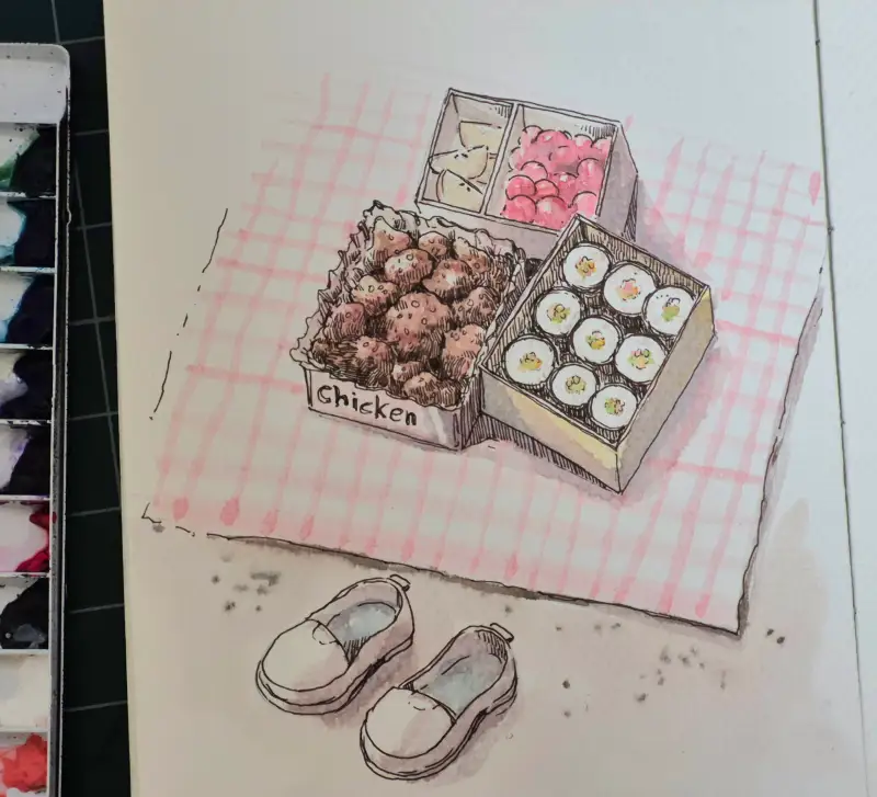김밥, 과일 치킨등 친구,부모님들 한곳에