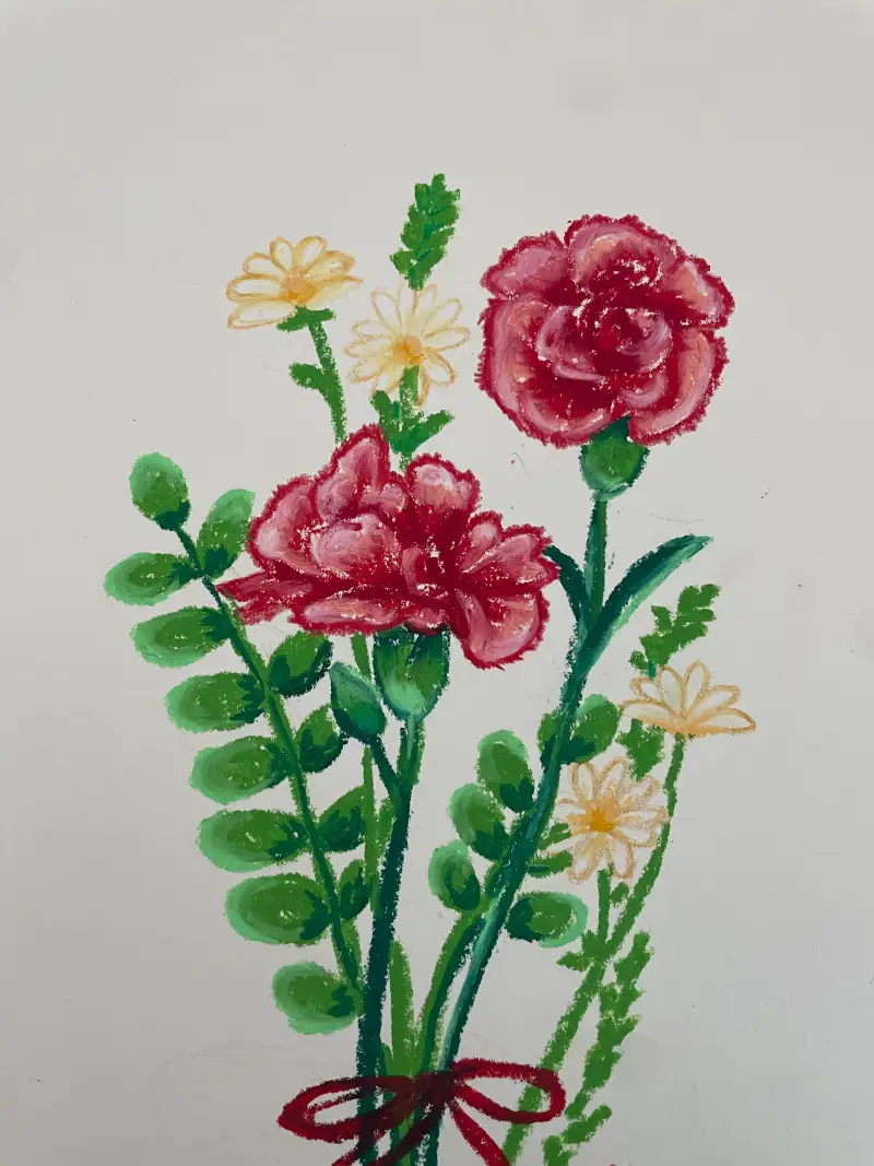 두번째 그림은 빨간색 카네이션을 그려봤어요. 리본을 먼저 그렸어야하는데 줄기 그리고 위에 추가했더니 색깔이 좀 이상해졌네요 ㅎㅎ