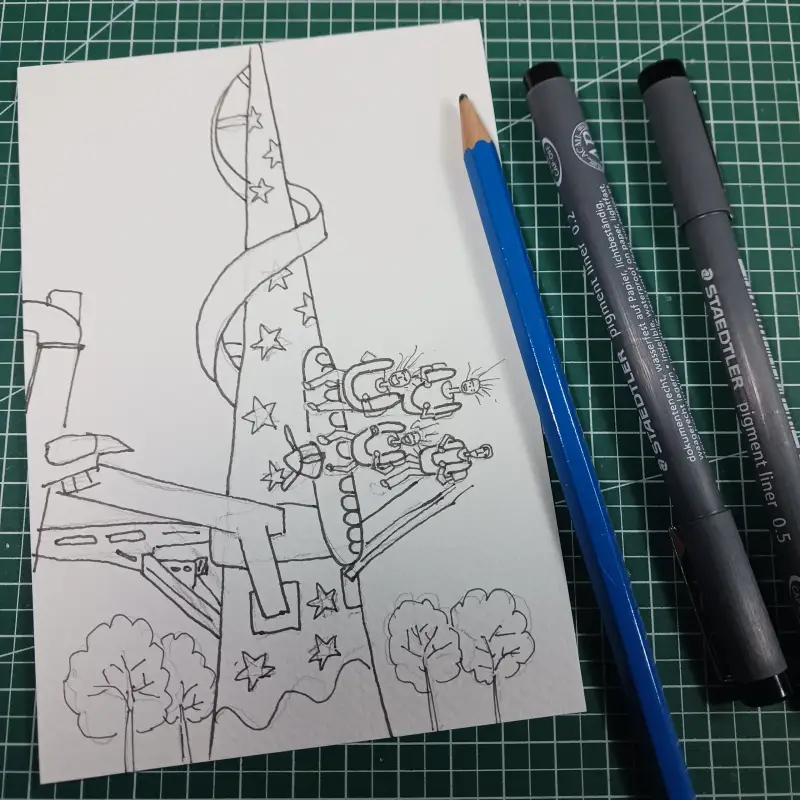 어릴적에 가본게 다에요 제가 다녔던 곳은 이름도 바뀌었고 기구들도 바뀌었더라구요 이것저것 검색하다 지인의 사진에서 디즈니와 비슷한 기구가 눈에 들어왔어요 드로잉으로 윤각을 잡았어요