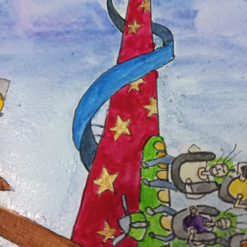 기둥이 붉어서 그런가 디즈니 느낌이 들어서 더 붉고 금빛 별을 칠했어요
