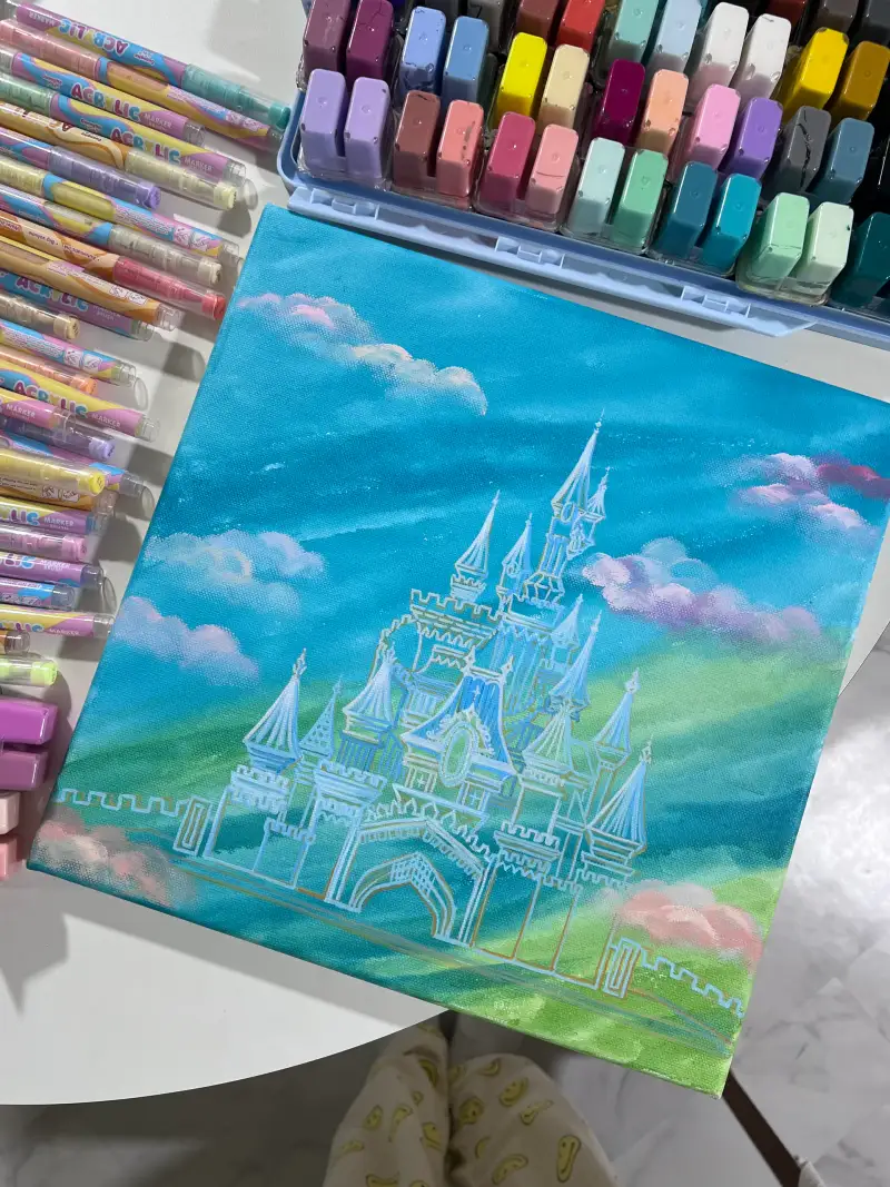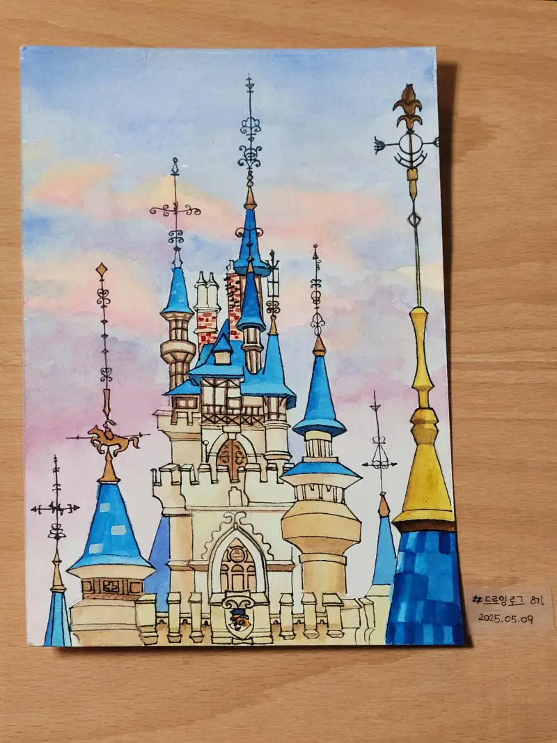 몽환적인 하늘과 어울리는 멋진 성을 그려주셨어요! 수채화 느낌이 너무나 매력적인 그림이에요💙
