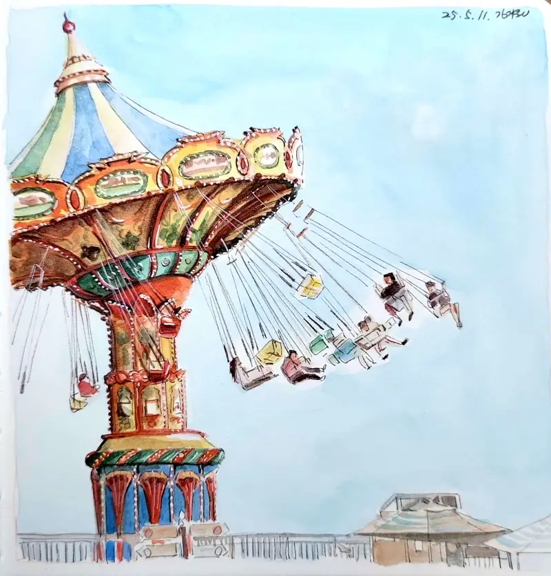 음영 표현과 붓 터치가 살아있는 멋진 그림이네요~! 놀이동산도, 여행도 떠나고 싶어지는 그림!💙