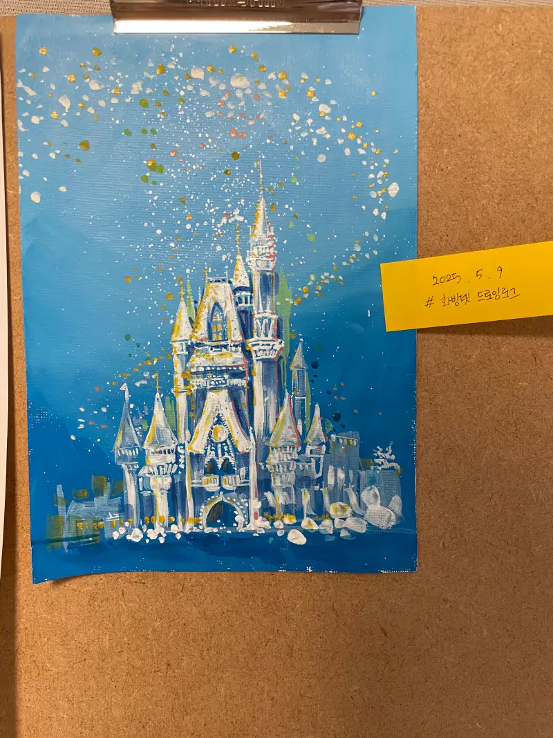 입시가 생각나는 배경깔기! 놀이공원하면 생각나는 파아란 배경에 디즈니 로고 성!