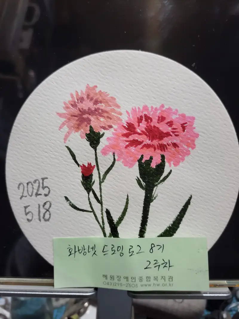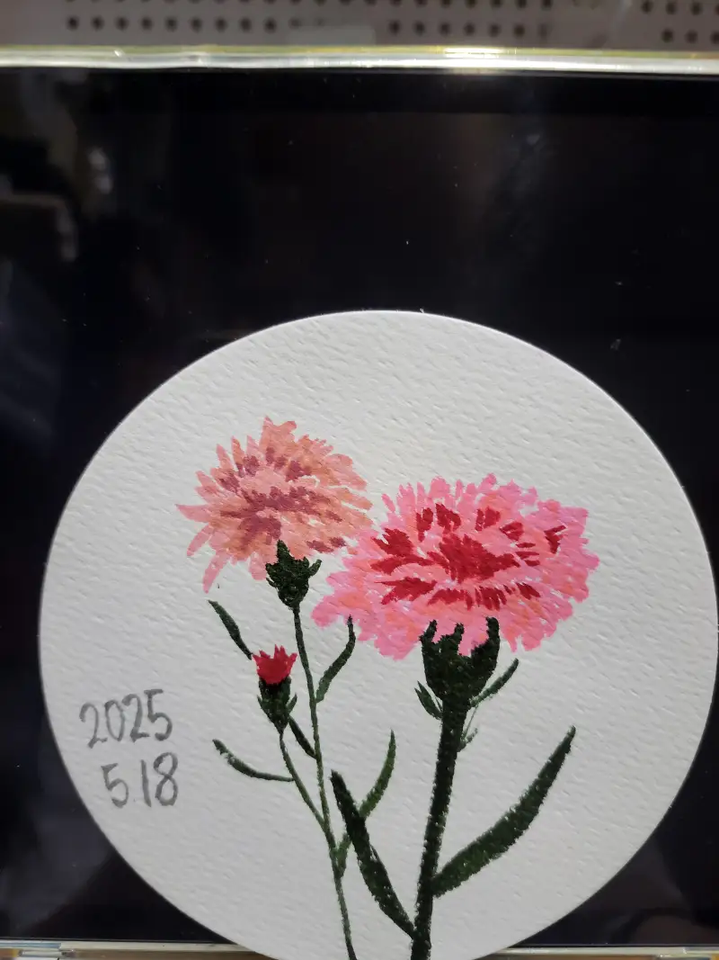 쇼츠에서 아카시아 붓펜으로 카네이션 그리기 보고 따라 그렸습니다