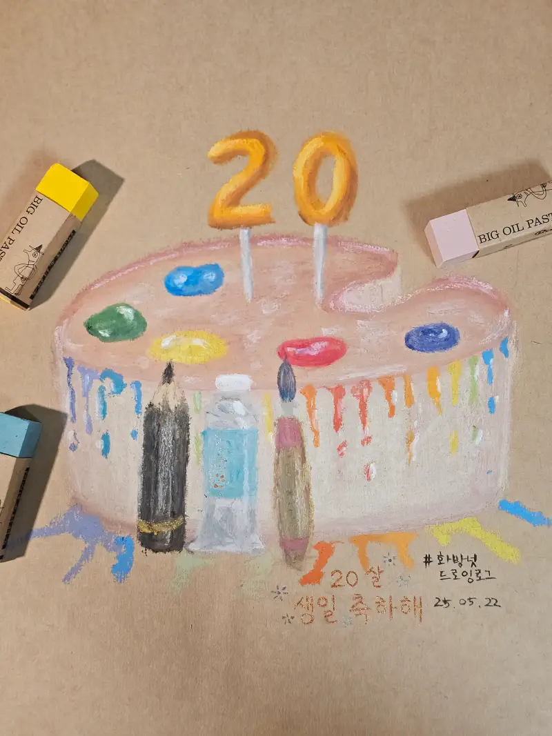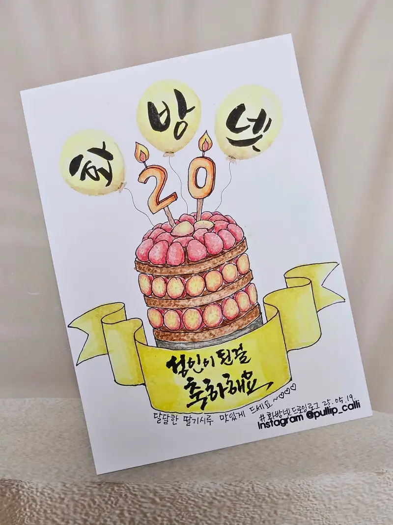 화방넷 20살을 축하하는 캘리와 함께 화려하고 멋진 딸기 케이크를 그려주셨어요!🥰