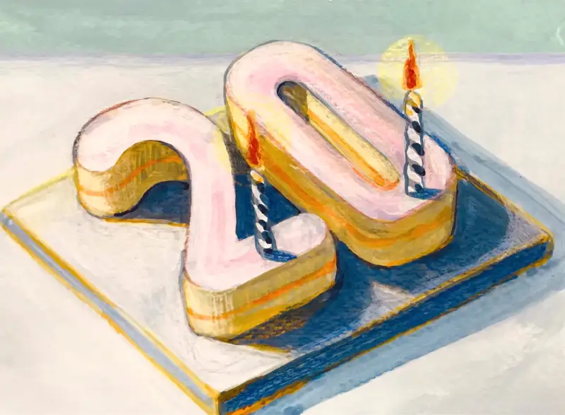 장미꽃 하나하나 정성이 느껴지는 20주년 케이크! 색연필 느낌과 너무 잘 어울려요~!💙