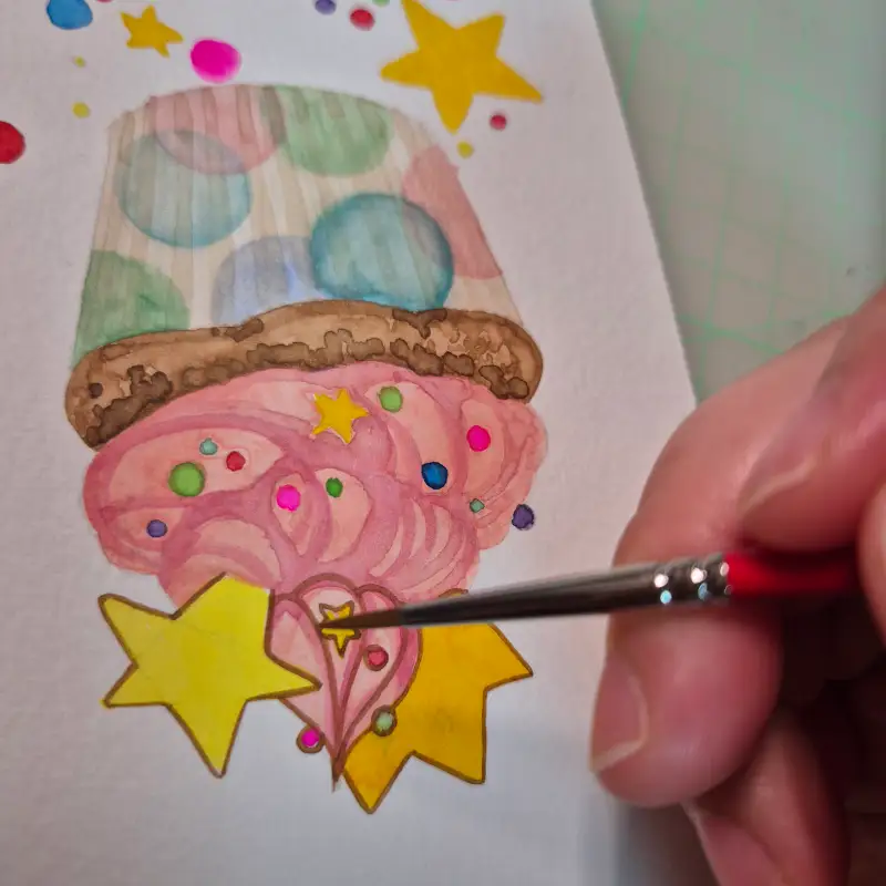 채색이 끝나고 부족한 듯한 그림에 아크릴 펜으로 하일라이트를 줍니다