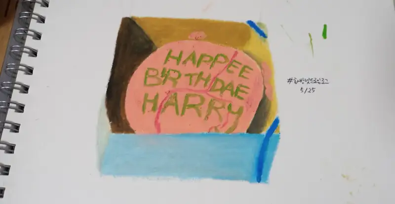 케이크하면 생각나는게 해리포터에 나오는 해리 생일 케이크가 떠오르더군요. 문교 오일파스텔로 그려봤습니다.