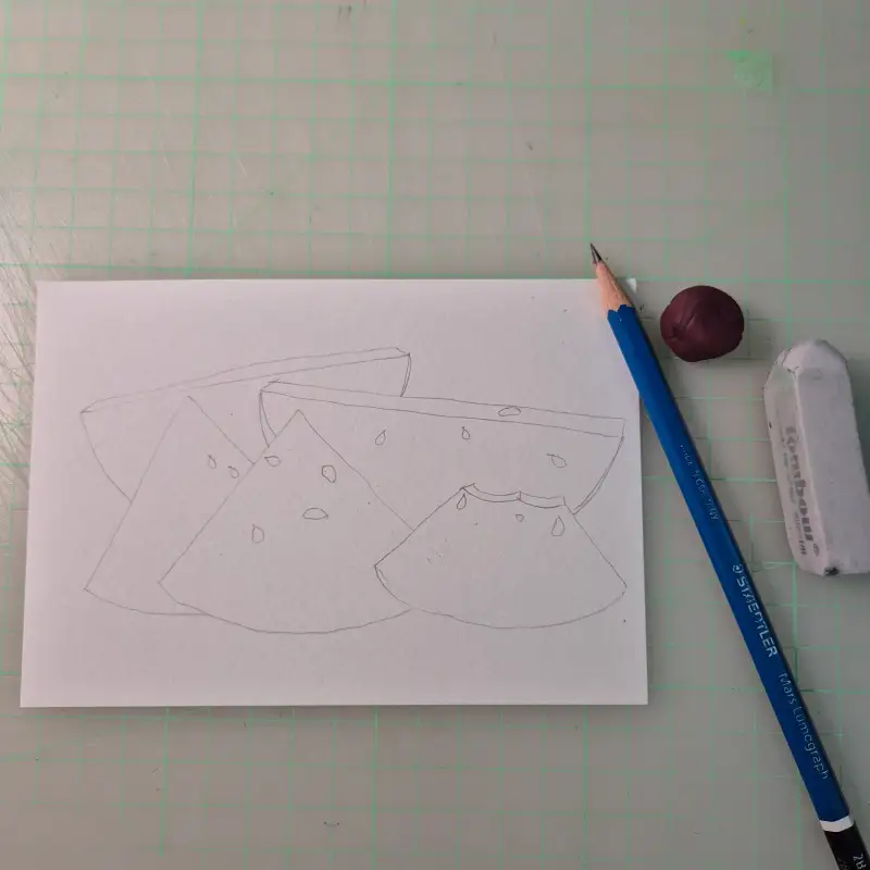 간단한 밑그림을 그리고 지우개로 연필을 실짝만 지워 줍니다