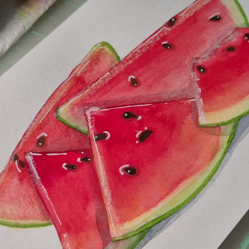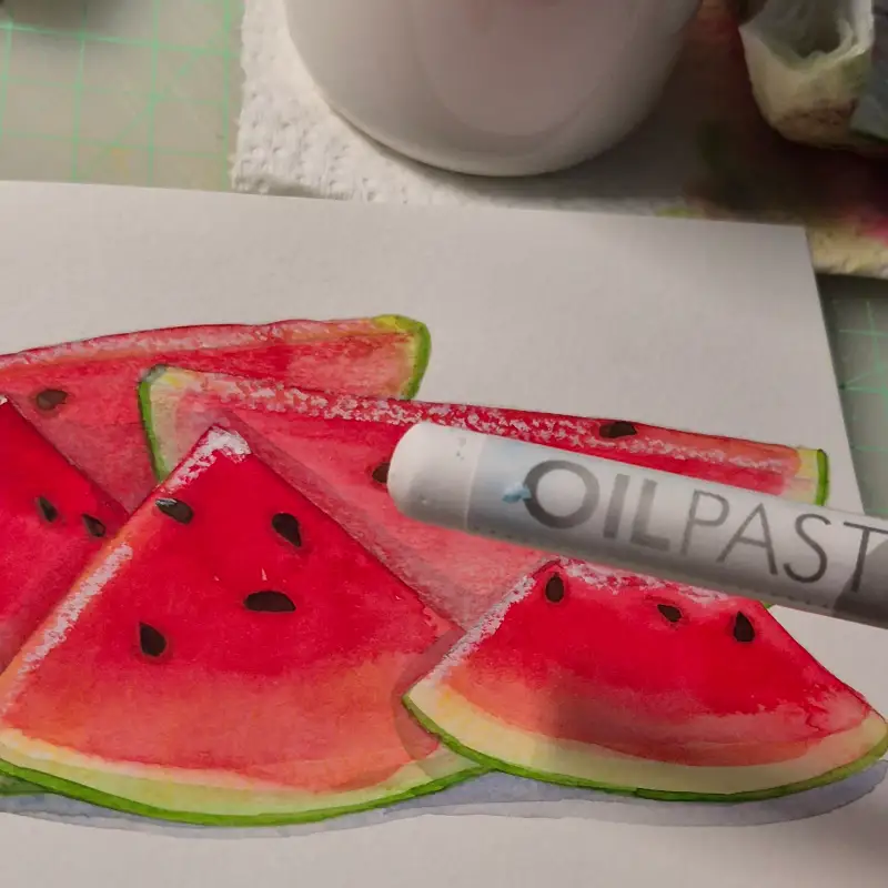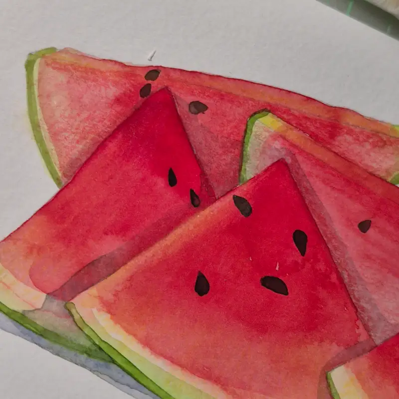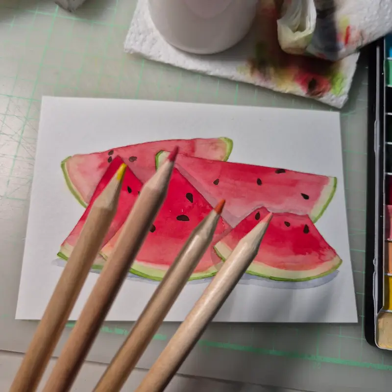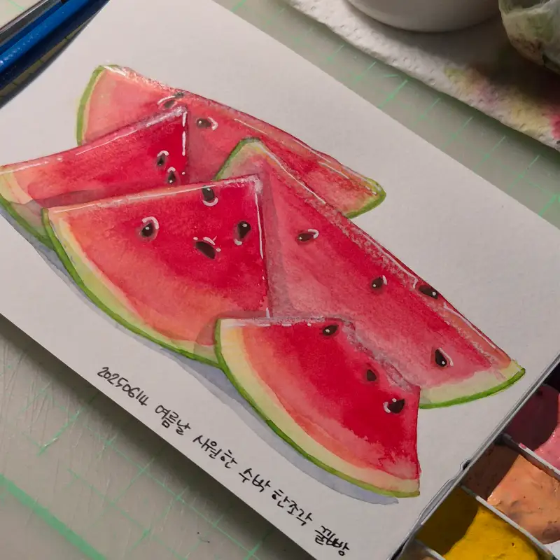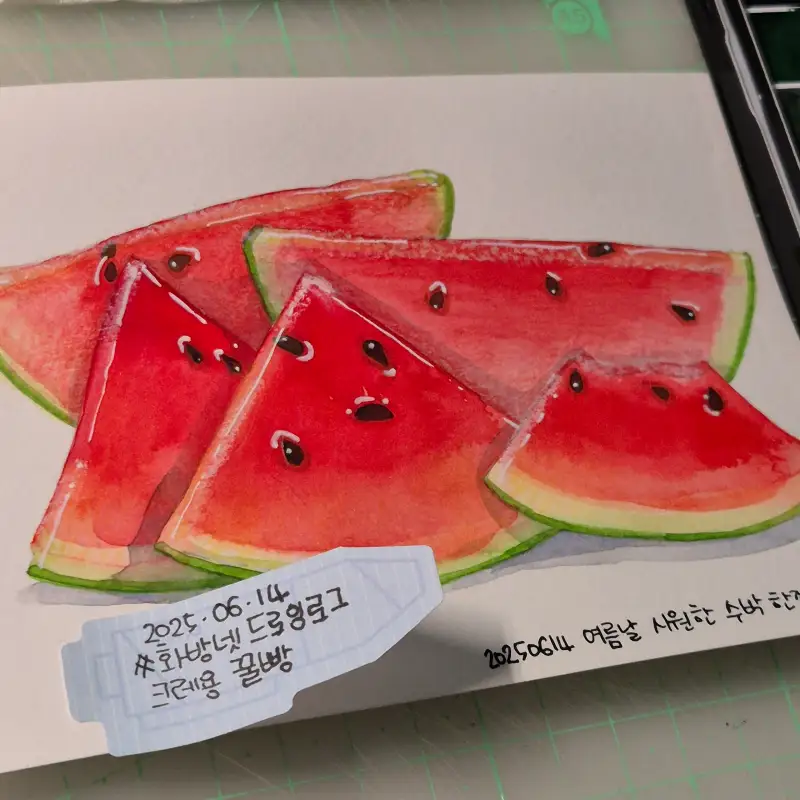 어디선가 받았던 색연필로 수박에 색을 더 해 줬습니다