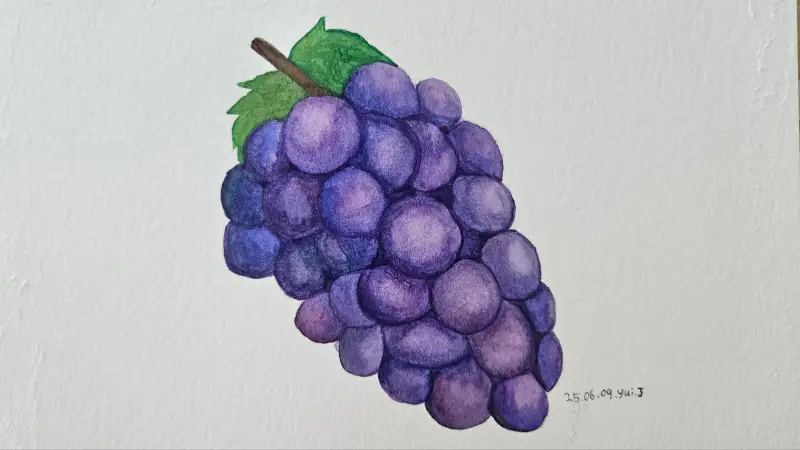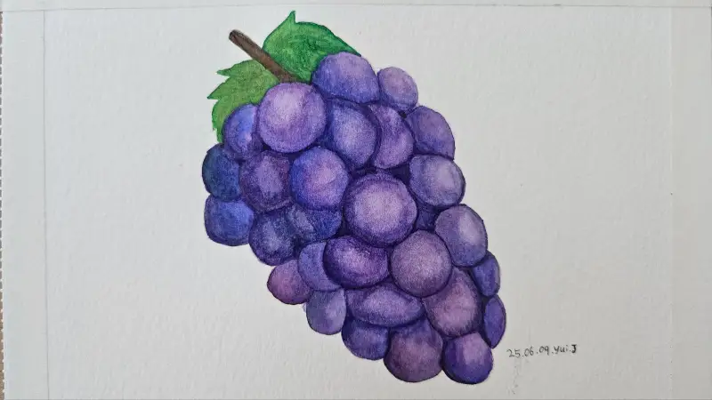물이 많이 들어간 예쁜 투명 수채화를 해보고싶었지만, 아직 내게 무리인가보다. 더 많이 채색을 연습해서 다음엔 워터리한 포도를 그려보고싶다. 나의 포도는 드라이하다.