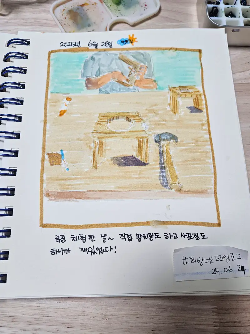 오늘은 목공체험한 날의 그림일기를 써봤습니다.