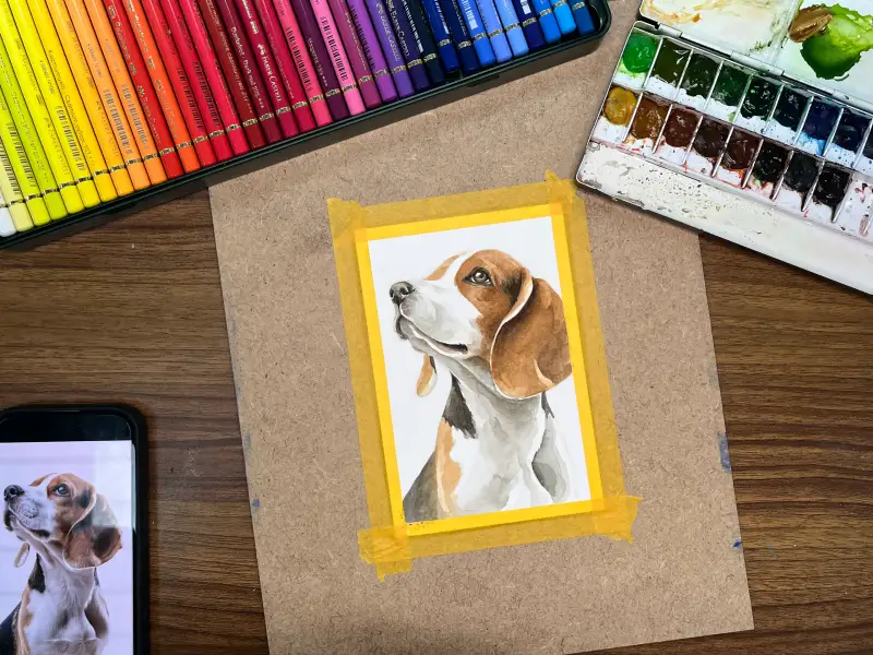 수채화물감으로 1차 채색을 한뒤