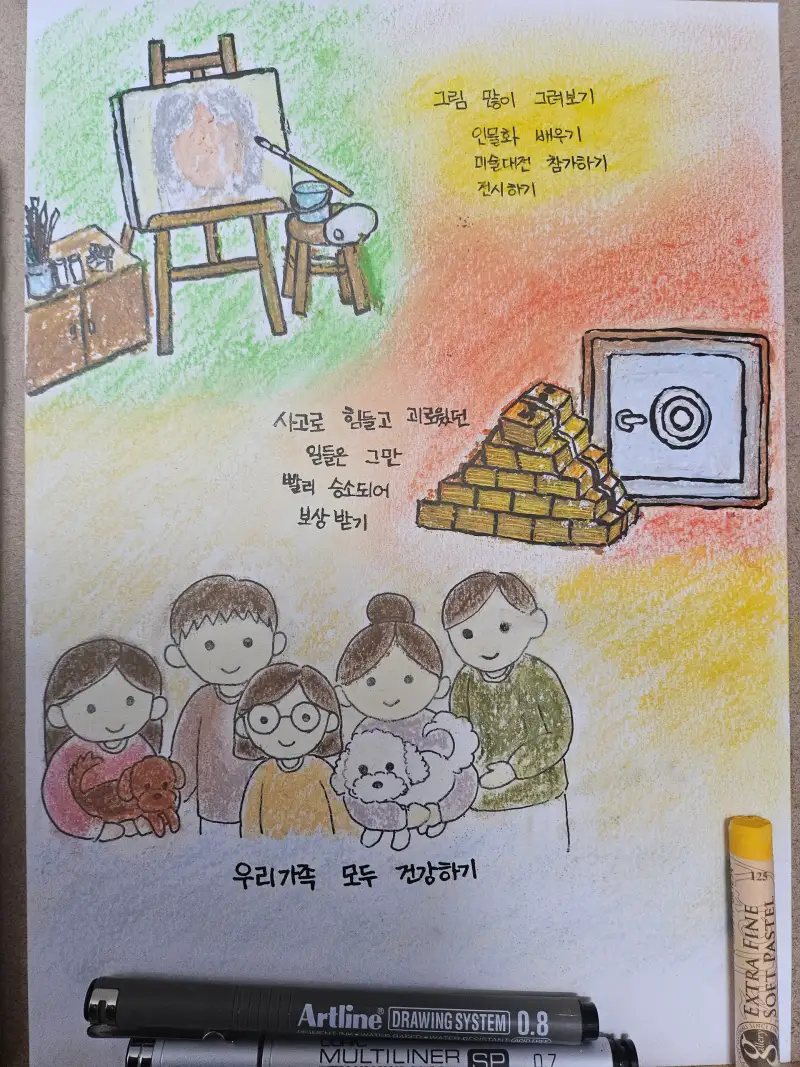 이번엔 그냥 파스텔과 펜으로 그려봤어요.