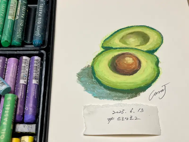 "아보카도"가 오일파스텔로 과일 그리기를 하기에 색감 내기도 좋고 재미있을것 같아서 시도해보았어요~