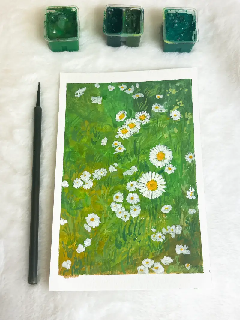흰색을 더 강조하려고 흰색 아크릴 물감을 살짝 사용했습니다