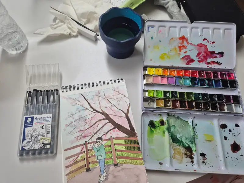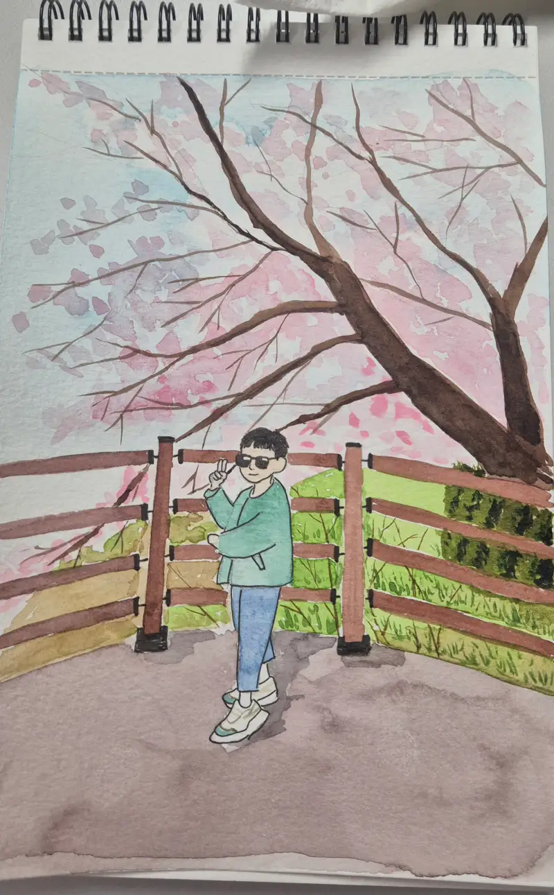저희 집 어린이와 함께 벚꽃구경가서 찍은 사진을 그려보았습니다 ㅎㅎ