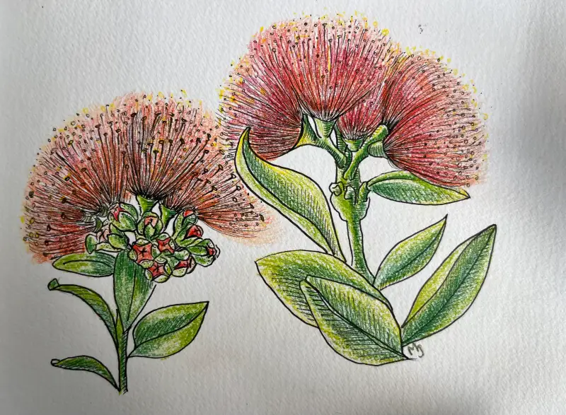 뉴질랜드 9월은 봄입니다. 본격적으로 꽃이 피기 시작해요 곧 다가올 여름에 필 꽃 '포후투카와(Pohutukawa)' 는 색연필(세르지오) 사용해서 그렸습니다.
