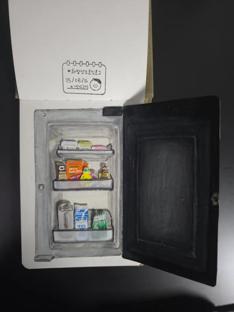 냉장고안이 휑~ 해서 그림만 그리면 허전할듯 해