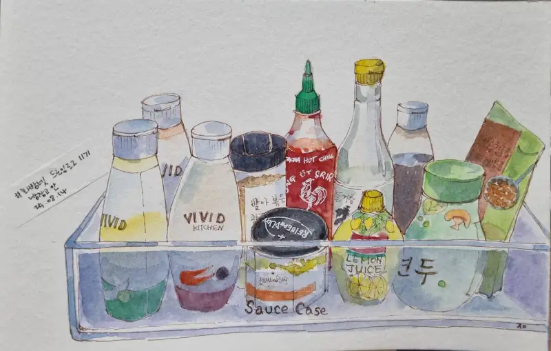 냉장고 안 혼돈의 카오스 같은, 누구에게 보여주긴 살짝 망설이게되는 곳을 그리라니요... ^^; 고민하다 우선 나름의 정리 후 소스칸을 그려봅니다~