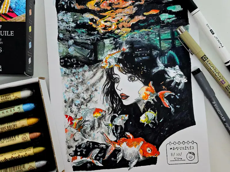 여섯가지 펄컬러로 금붕어와 물방울 배경을 살짝 손봐줬다ㅎㅎㅎㅎ