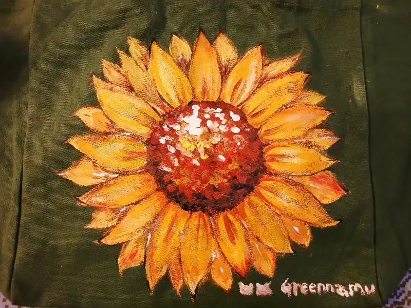 어제 초록캔버스 가방에 그린 아크릴로 해바라기