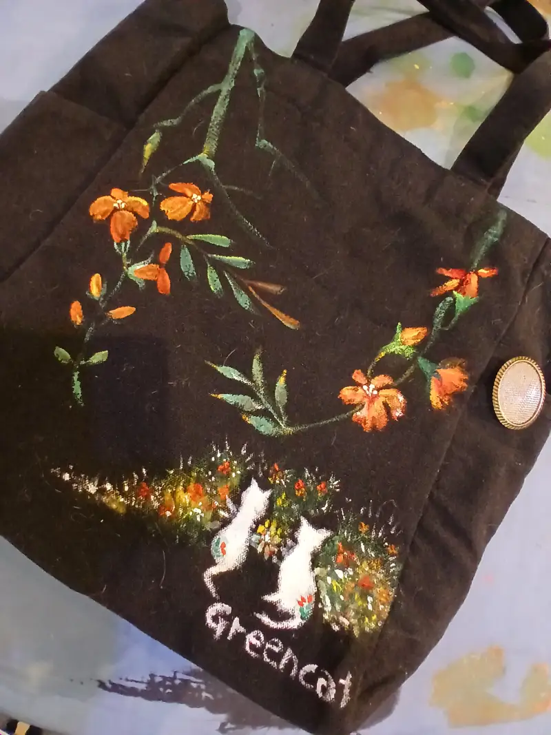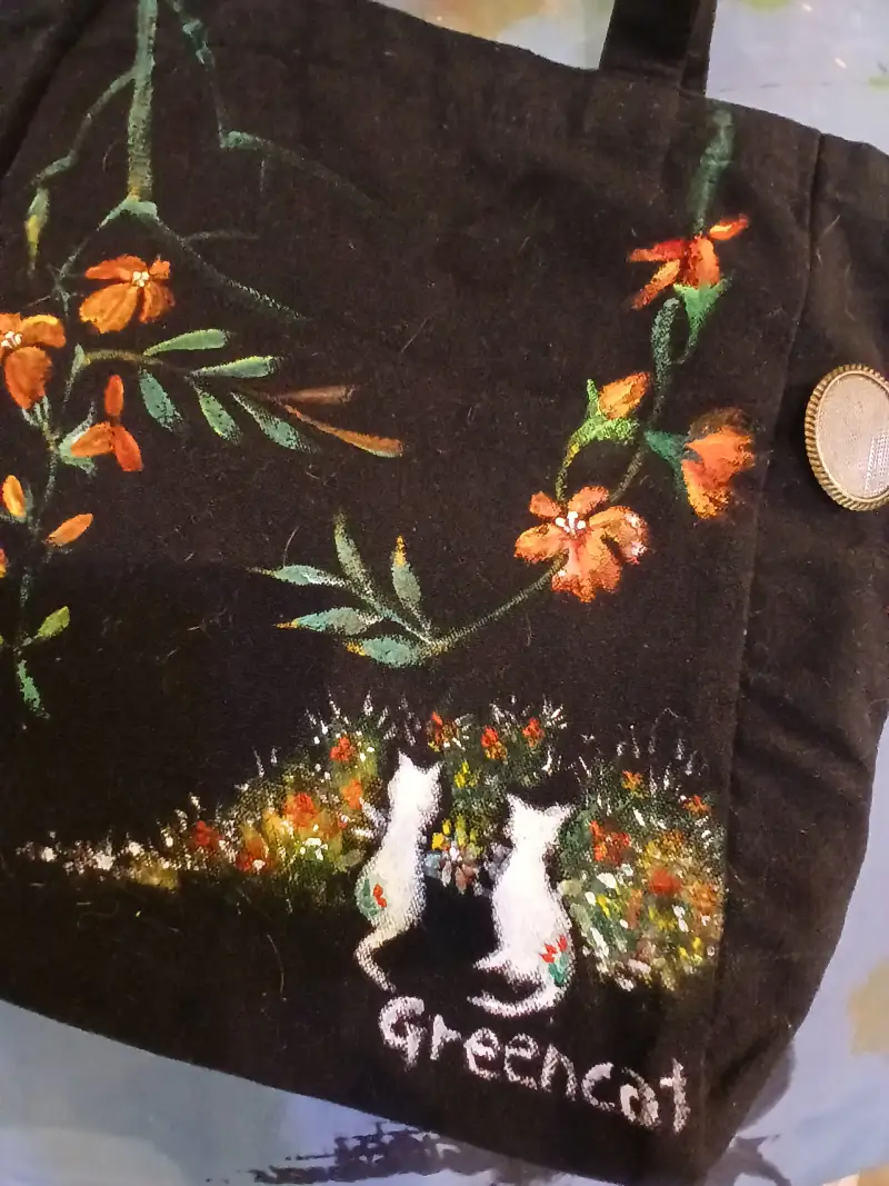 도서관에서 준 가방에 능소화 두냥이 아크릴로