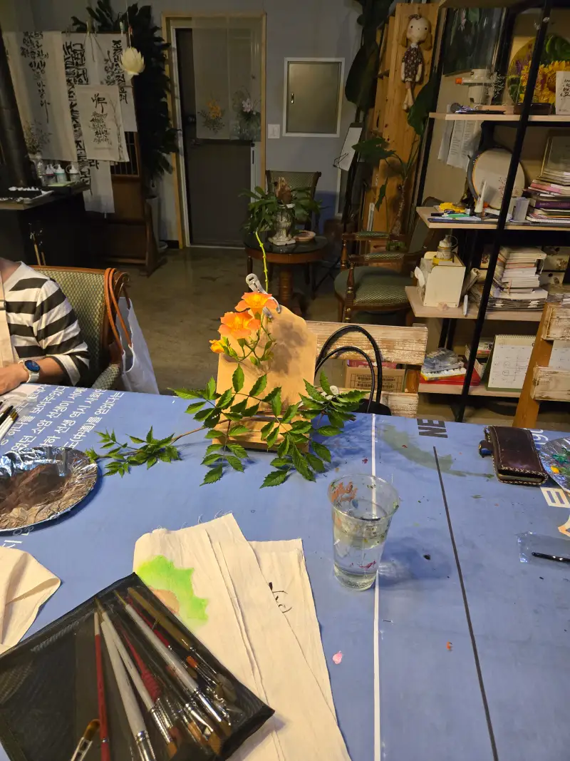 집에서 십분거리 ㅁ캘리에서 수업이 이루어져 평소 집에 쌓아둔 캔버스에 그렸고 이 더운 여름 휴가처럼 즐긴 시간이었다