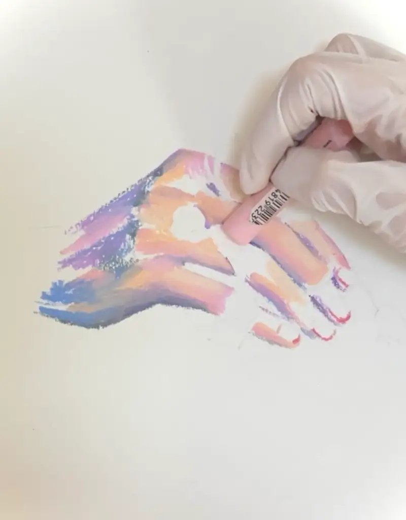 손의 형태를 대강 연필로 잡아준 뒤 오일파스텔로 채색을 시작했어요~ 언제나 절거운 오일파스텔 작업..🎵