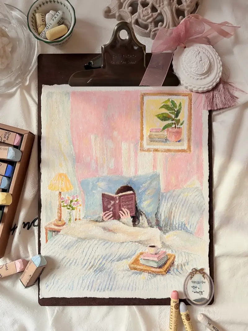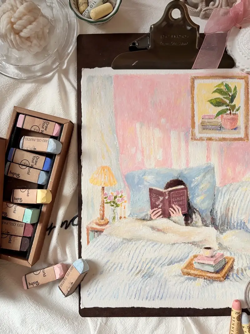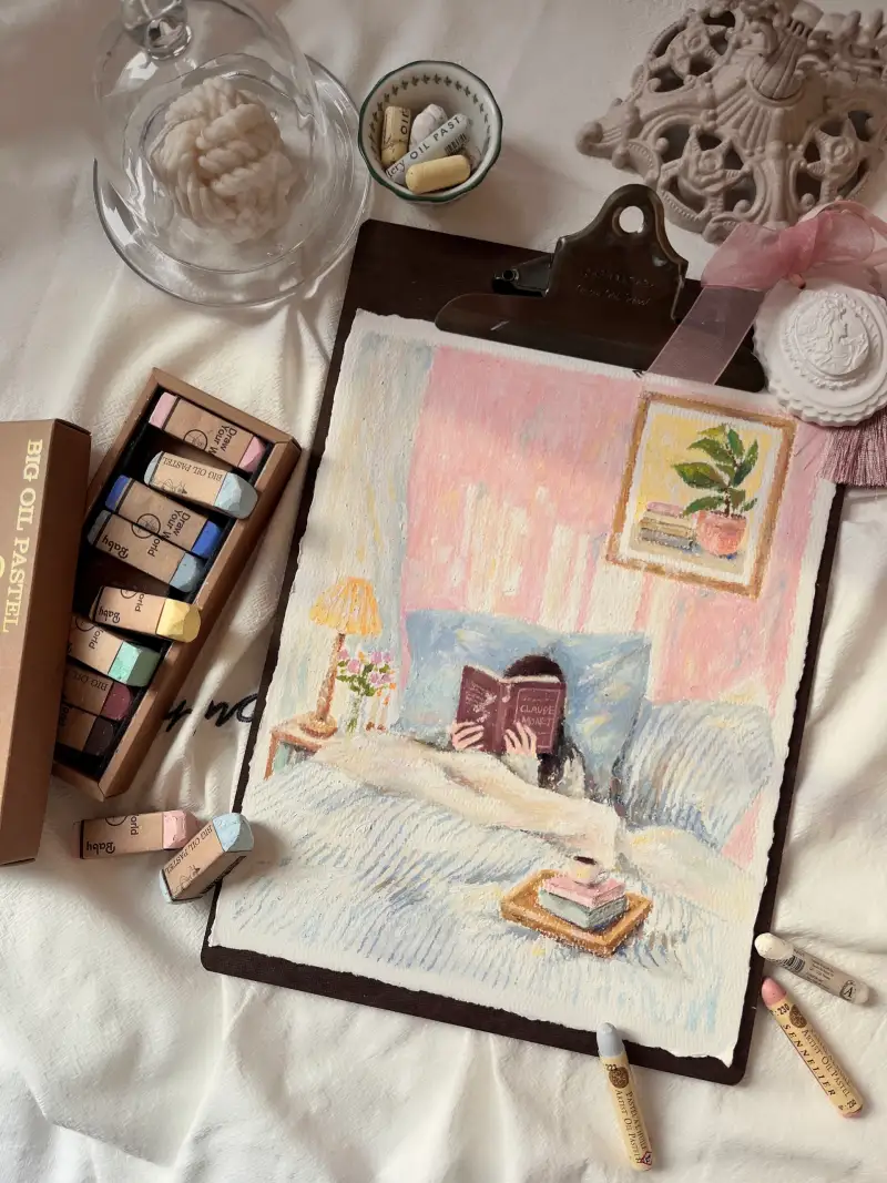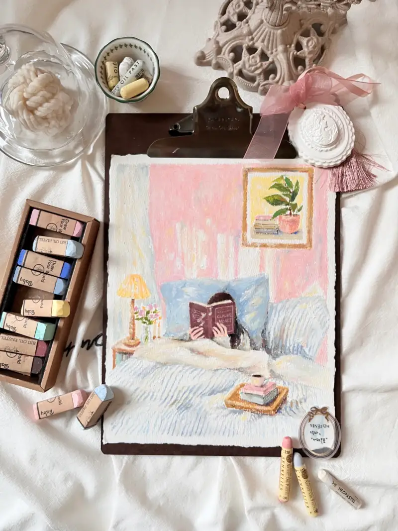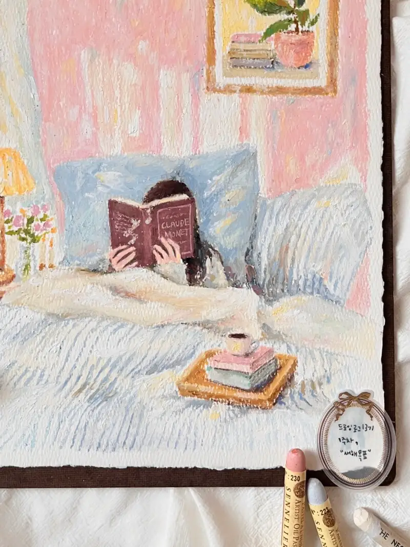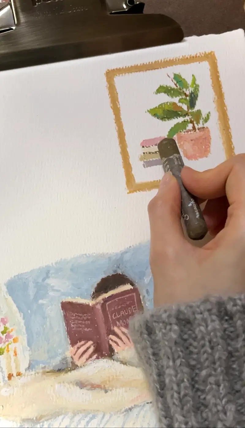 요즘 애정하는 카와치 오일파스텔을 베이스로 깔아서 채색해보았어요~🤍