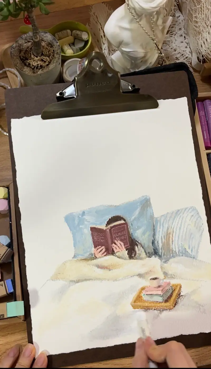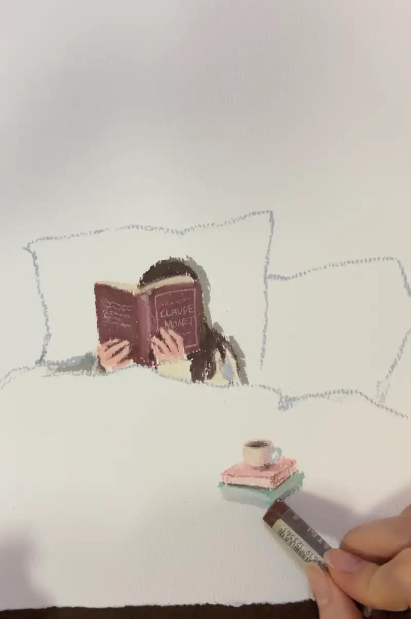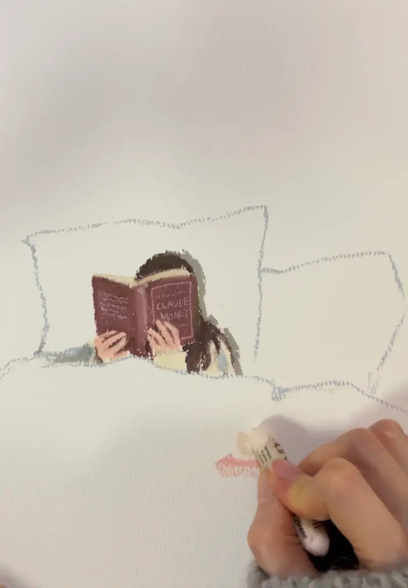 우선 책을 먼저 그려줬어요! 빈공간 살짝 남겨두고 깨알같은 손가락 그려주고효.,,