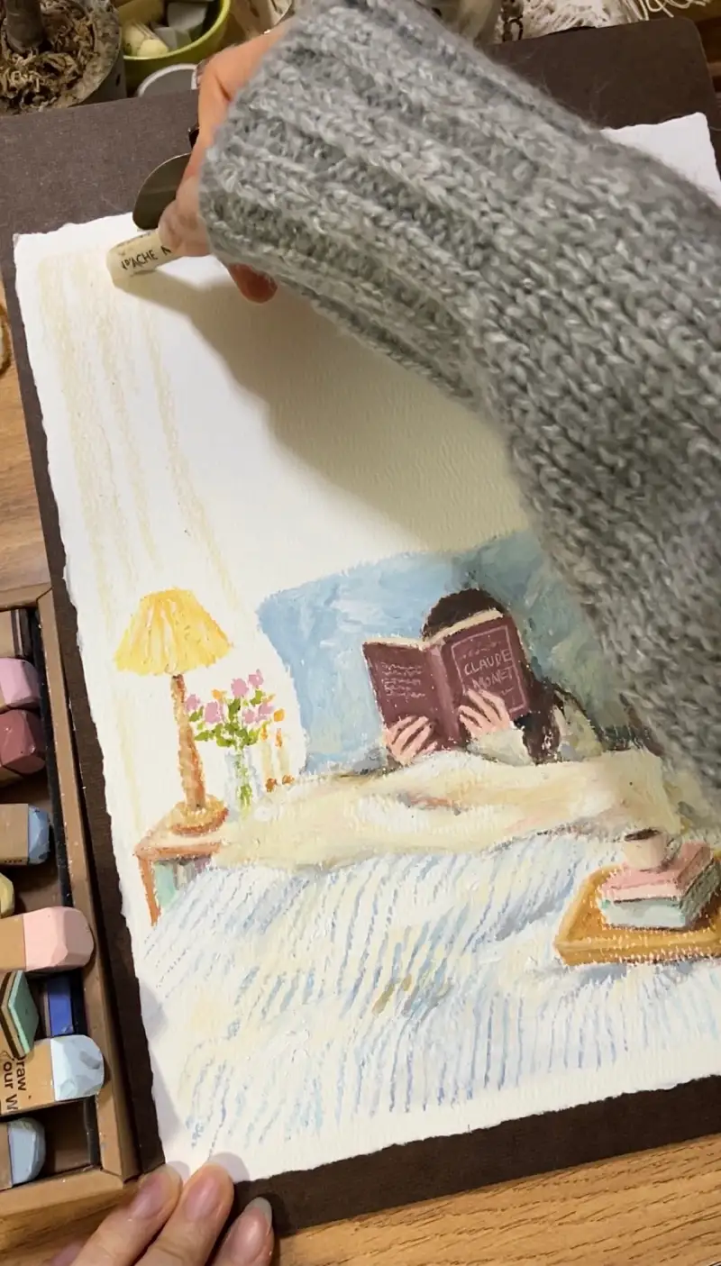까렌다쉬 네오파스텔 크림색 (491) 너무 애정해요..., 그림을 한 층 더 따숩게 만들어줍니댜ㅠㅠ 요거 낱색으로 더 많이 구매 할 예정이야요🤍