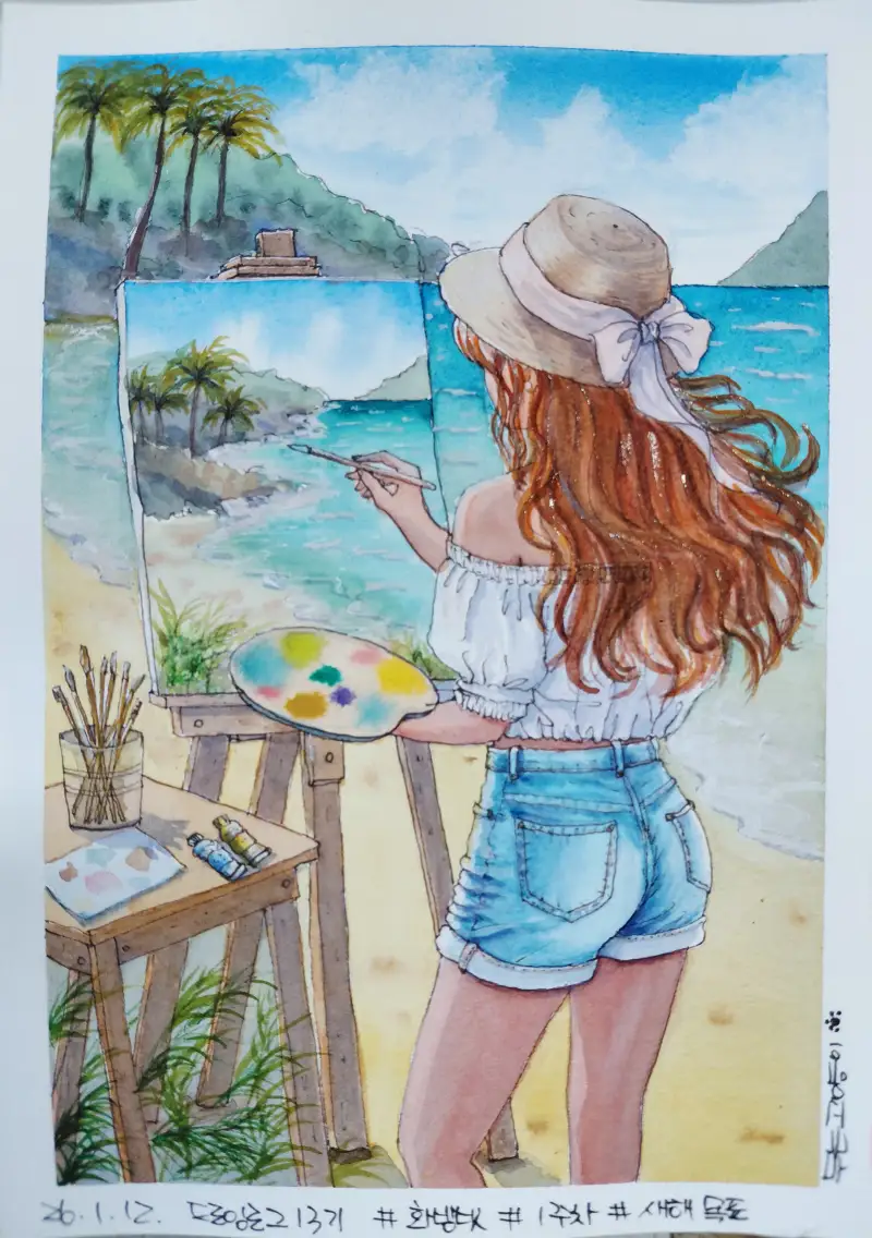 저의 새해 목표는 짧은 크롭티와 짧은 반바지를 입어도 삐집고 나오는 군살이 없는 몸매로~^-^ㅎㅎ 여행을 다니면서 어반스케치를 하는 것입니다~^-^ 너무 멋지겠져? 현실은 날 놓아주려 하지 않겠지만 나를 위한 단 며칠만이라도 실행에 옮겨야 겠어여~^-^ 그러려면 지금부터 운동도 시작하고 그림연습도 꾸준히 해야겠져~