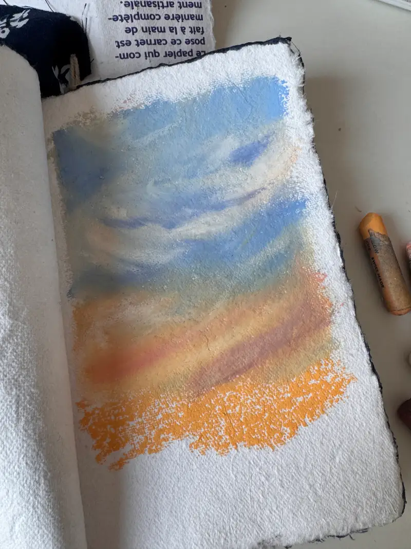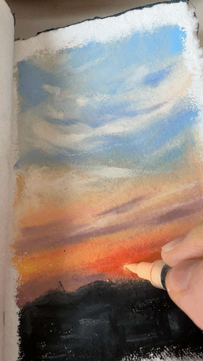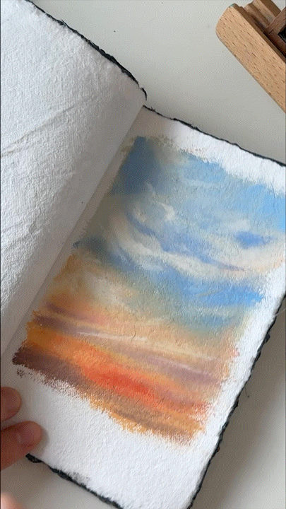 오일파스텔로 밑색을 깔아주고 바로바로 블렌딩하며 그려주었어요