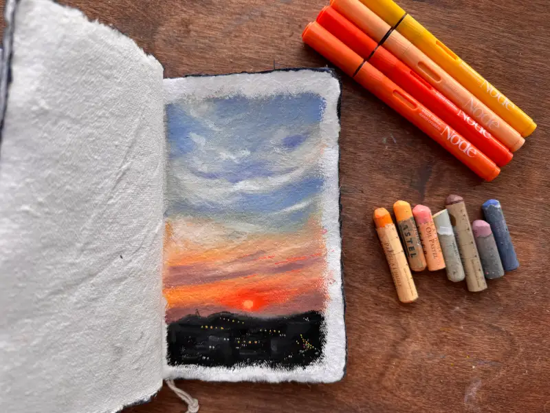 올해에는 라말리 인디고북에 매일은 못하더라도 오일파스텔로 일주일에 한번은 꼭 하늘을 기록하고 있는데요