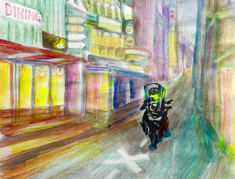 풍경만 그리면 심심할까 해서 마침 지나가던 오토바이를 유성 싸인펜으로 그려주었어요.