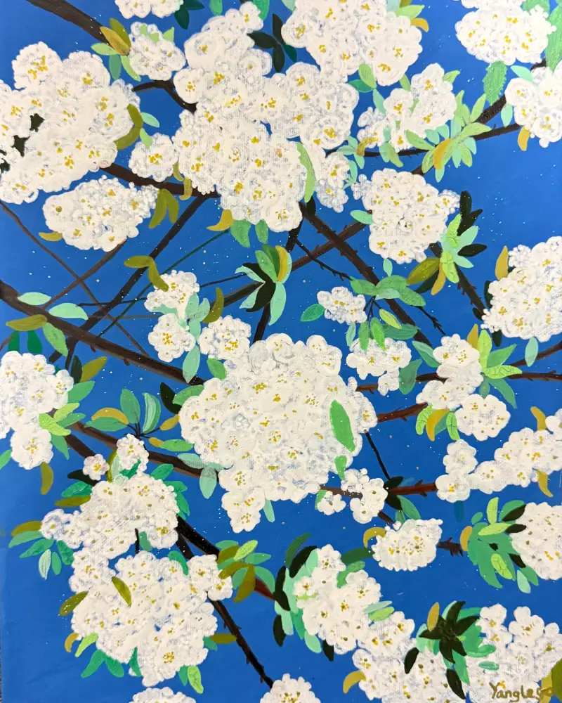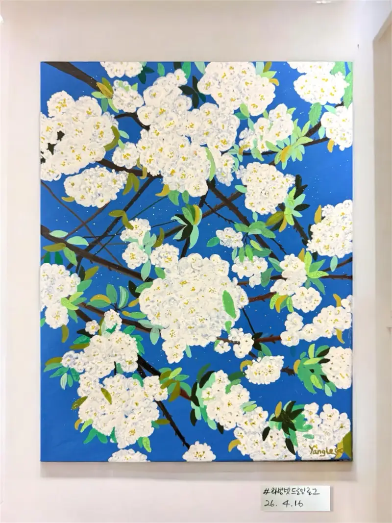 🌸4월 파란 하늘 아래, 흩날리는 하얀 벚꽃들 🌸🤍 겹겹이 쌓인 꽃잎을 한 점씩 쌓아 올리듯 그려봤어요. 봄의 순간을 캔버스에 마카로 표현한 질감과 색감, 그리고 봄의 공기를 담고 싶었던 작업입니다.
