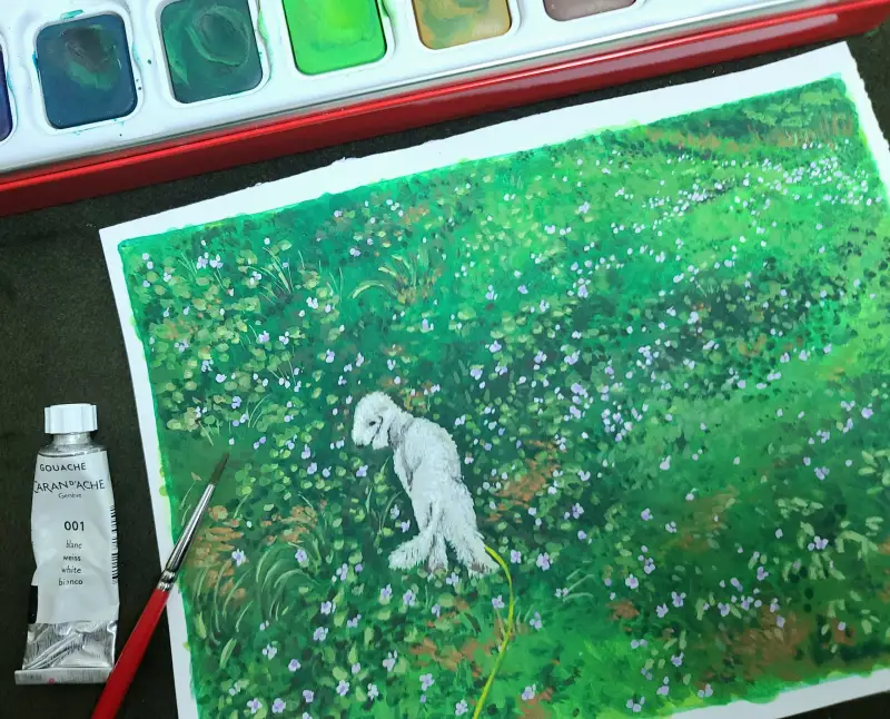 까렌다쉬과슈의 쫀득?함^^; 이 풀밭에 착착 붙는 느낌이 재밌고 감사했습니다. 수정하고 싶던 부분을 마치 그런일이 없었던 것처럼 만들어줬습니다요😅