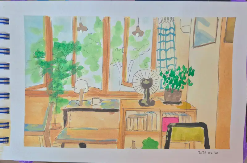 모나미펜으로 라인을 그리고 까렌다쉬 고체과슈로 칠했습니다. 수채화과슈는 수채화처럼 투명하게도, 과슈처럼 은폐력있게도 쓸 수 있어서 좋아요. 그나저나 색을 예쁘게 쓰기가 참 어렵네요 ㅋㅋㅋ