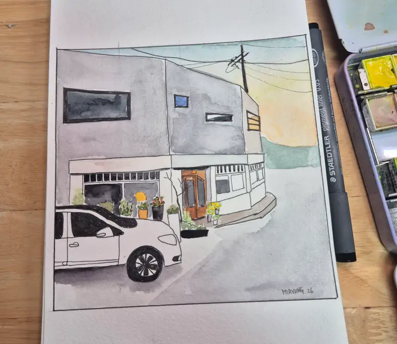 저희 집 앞 골목에 있는 커피가 아주 맛있는 카페를 그려보았습니다 :)