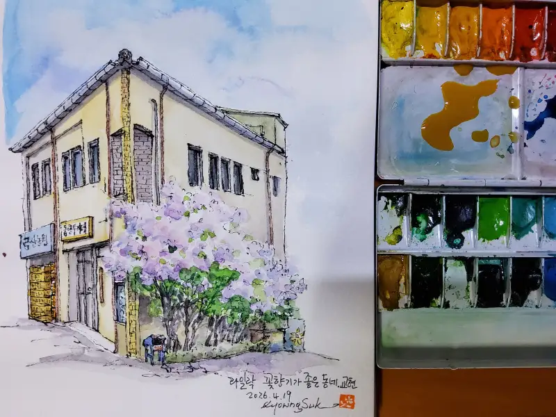 드로잉로그15기1주차-지금의풍경_라일락 향기 좋은 동네