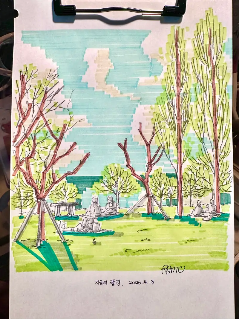 [드로잉로그15기1주차] 지금의 풍경, '4월의 한강' - 화방넷 커뮤니티