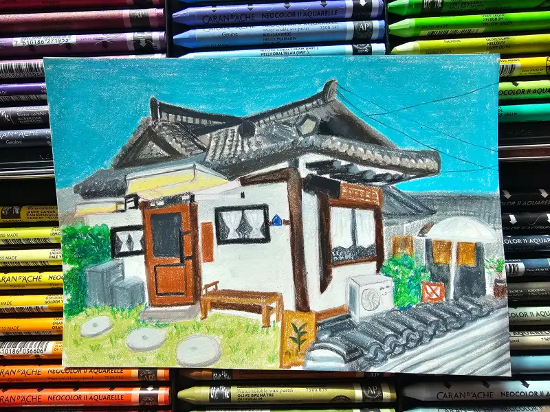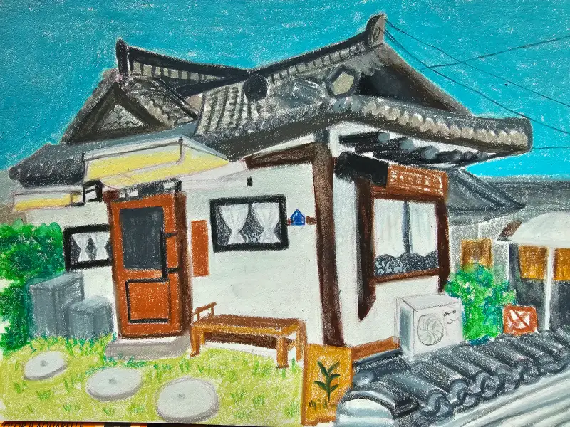 한옥건물은 그릴때마다 너무 어렵네요.😭